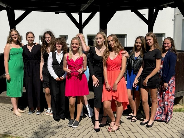 Rozloučení s letošními deváťáky - krásné odpolední setkání na zahradě za školou připravily děti se svým třídním učitelem Štěpánem Prokopem. Spousta rodinných příslušníků, bývalí i současní učitelé, zástupci obce, slova díků a vzájemné vděčnosti za všední i nevšední dny, vzájemnou pomoc, respekt, přípravu k přijímačkám i jejich výborné zvládnutí.