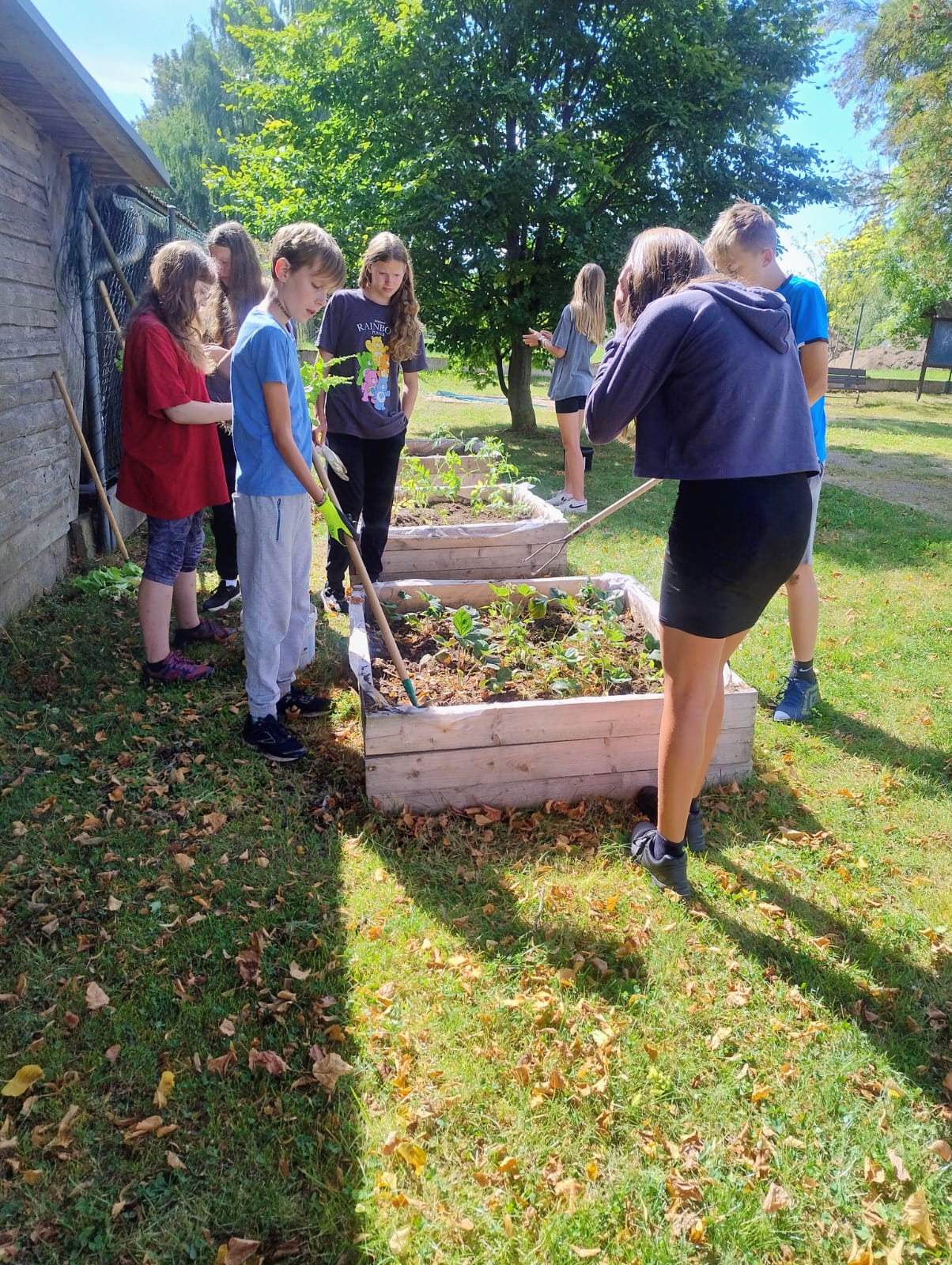 Využívali jsme také příznivého počasí a chodili se žáky ven ve vyučování. Na procházky, na sběr přírodnin, na exkurzi, bádat, zaběhat si v tělocviku v přírodě, upravovat okolí školy či připravovat vyvýšené záhony na zimu apod. Vždy jsme si přitom připomínali pravidla bezpečného a ohledupného chování.