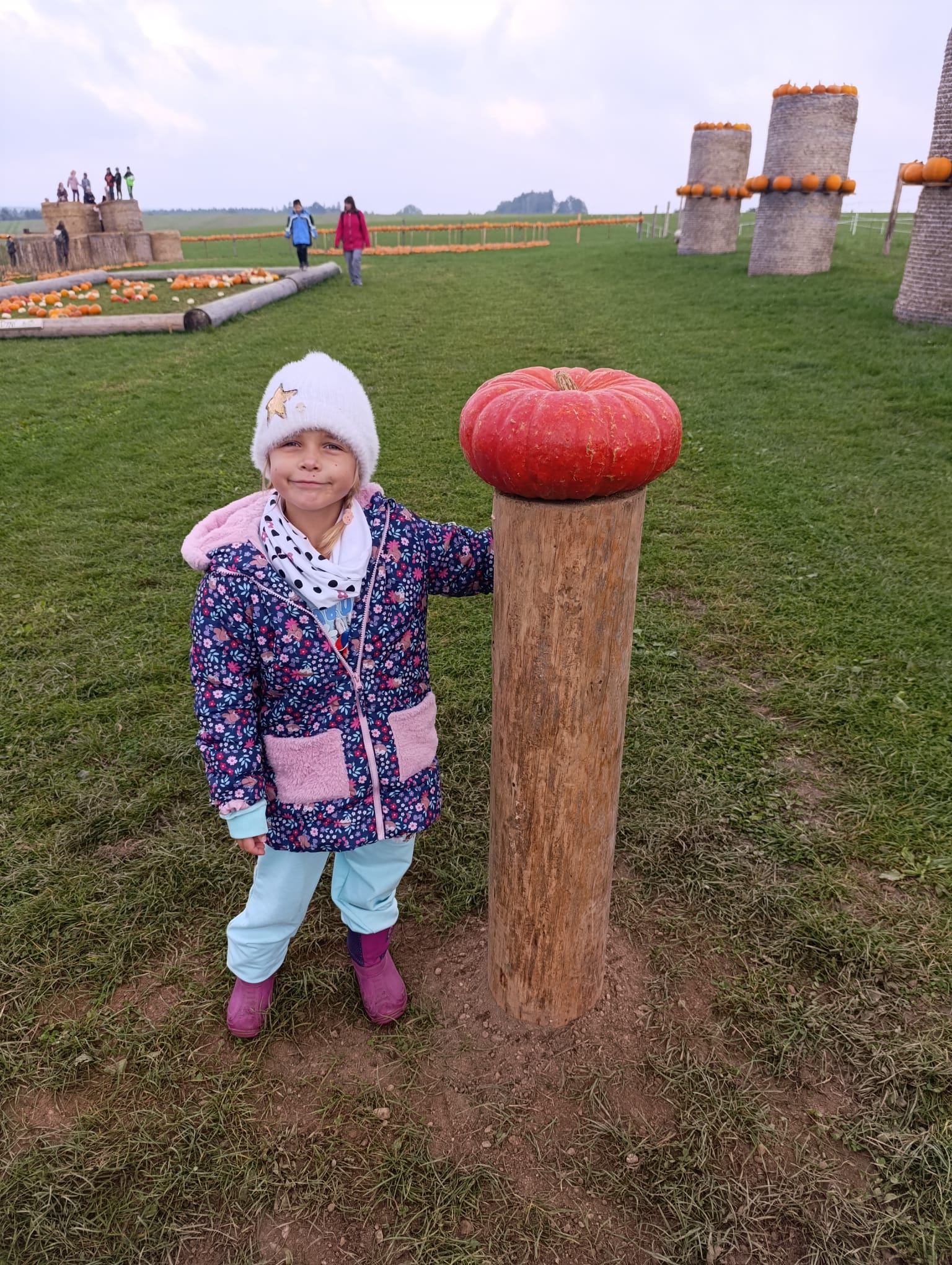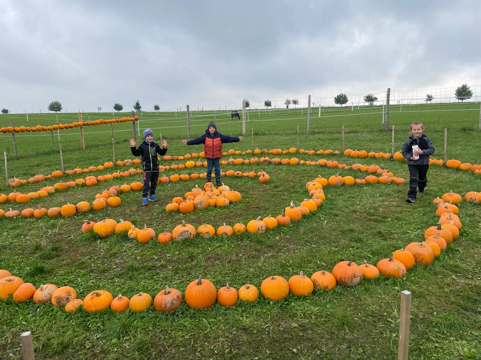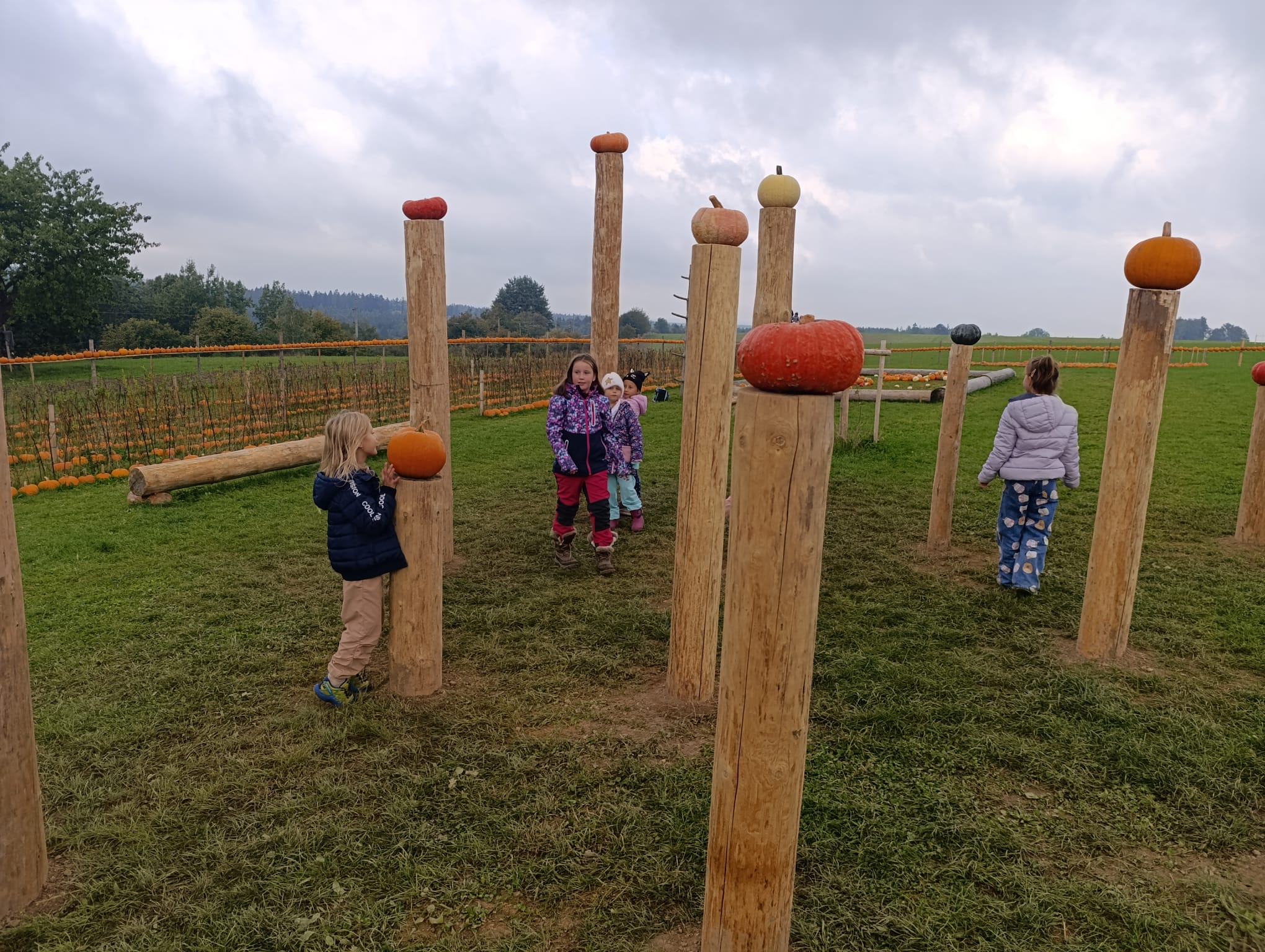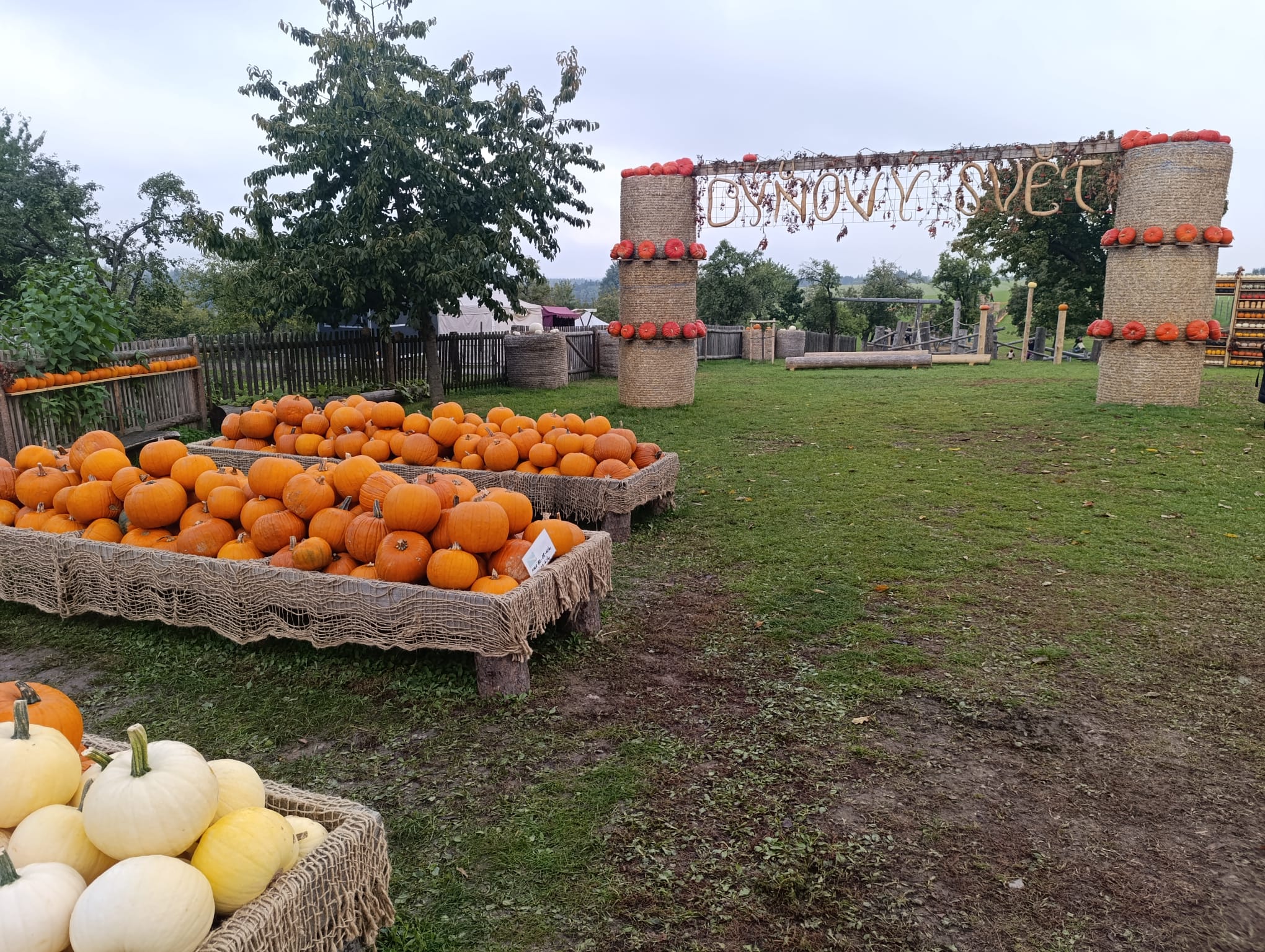 Venku si každý mohl projít dýňová bludiště, hrady z balíků slámy, kombajn, houpačky, zdobené kůly, hernu s dýněmi.