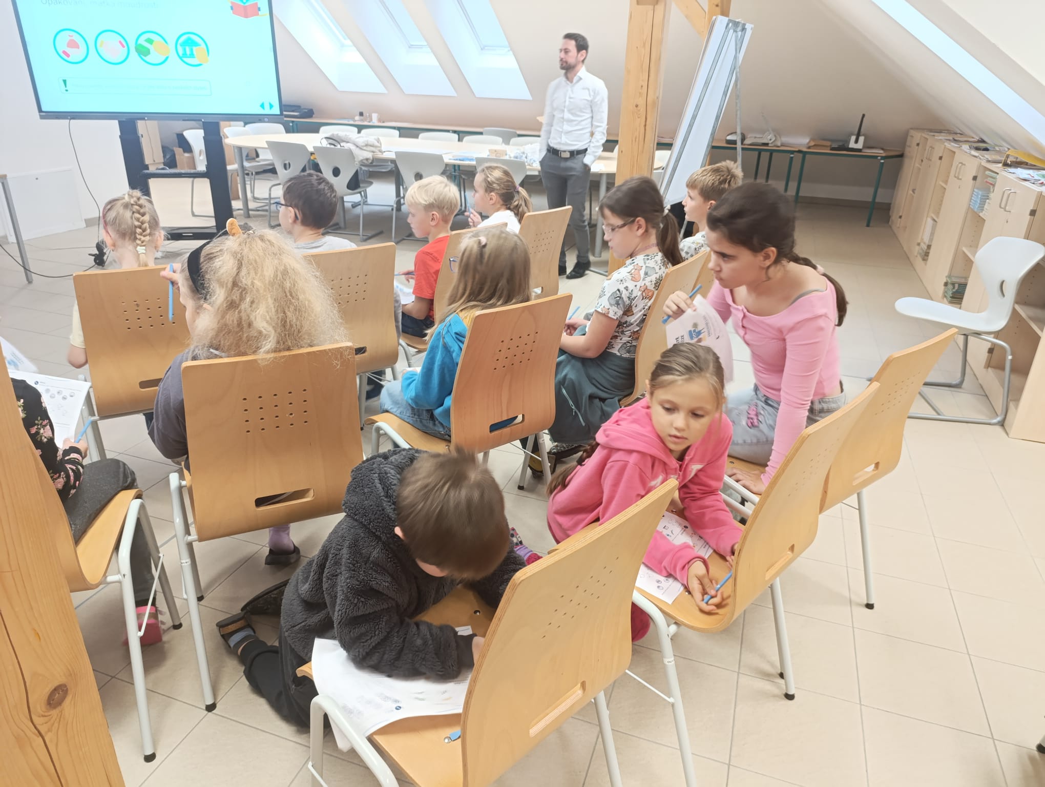 Pracovali ve skupinách i samostatně na pracovních listech, všechny poznatky využili i ve skupinovém kvízu. Za své vědomosti sbírali průběžně sladkosti a nálepky. Všichni se moc snažili odpovědět dobře.