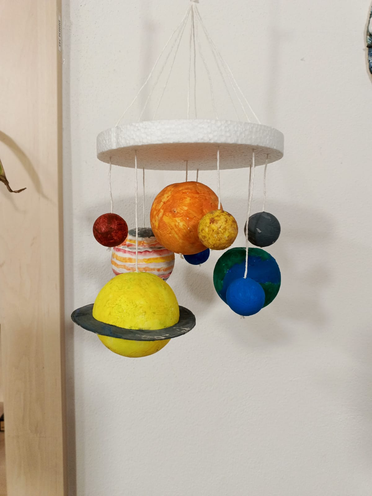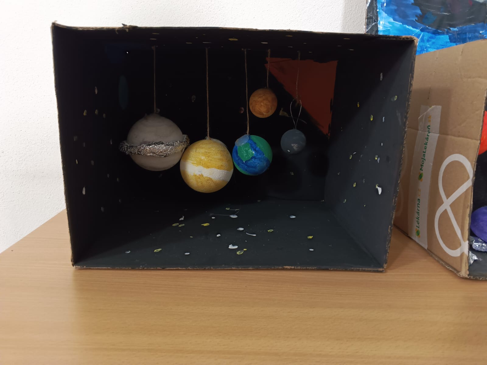 Jak vidí vesmír a Sluneční soustavu žáci 6. třídy si jejich spolužáci mohou prohlédnout v chodbě u šatny.