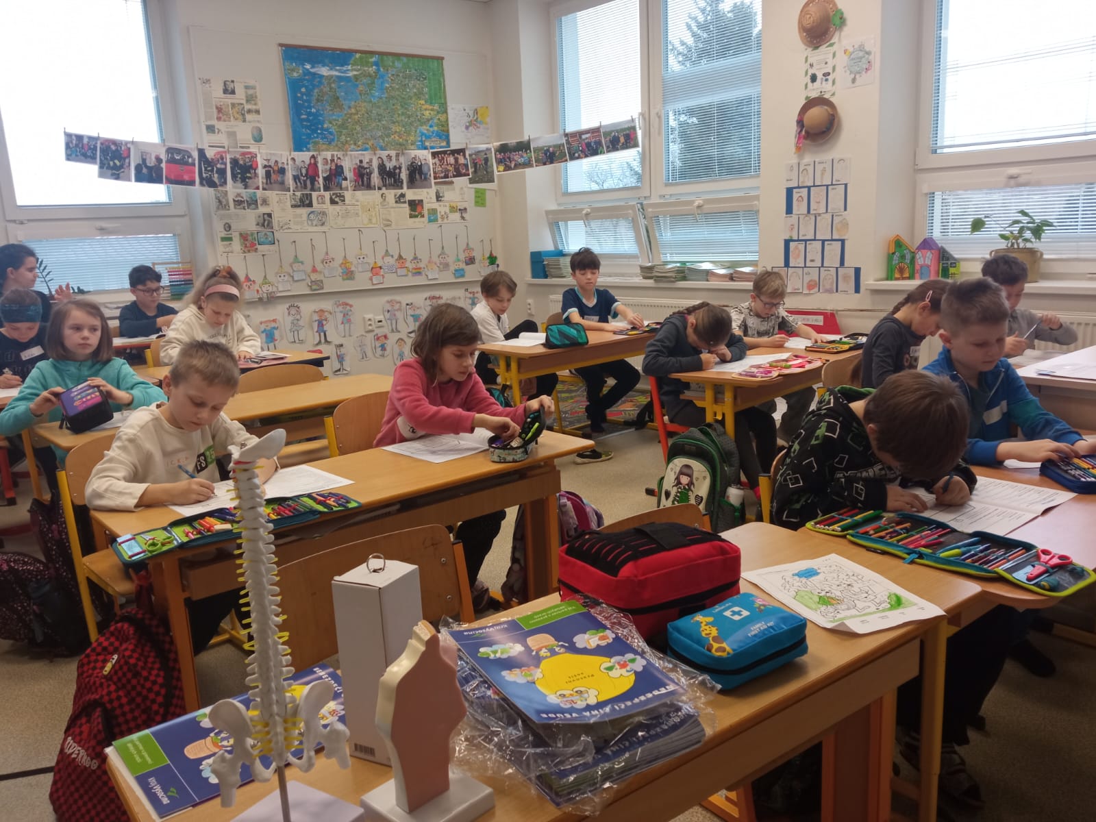 Žáci 3. třídy se zúčastnili programu Prevence úrazů – Nebezpečí číhá všude. Seznámili se s úrazy, které jim mohou hrozit doma, ve škole i venku, a společně hledali způsoby, jak jim předcházet. Důležitou součástí bylo také seznámení se základy první pomoci, které si děti mohly prakticky vyzkoušet.