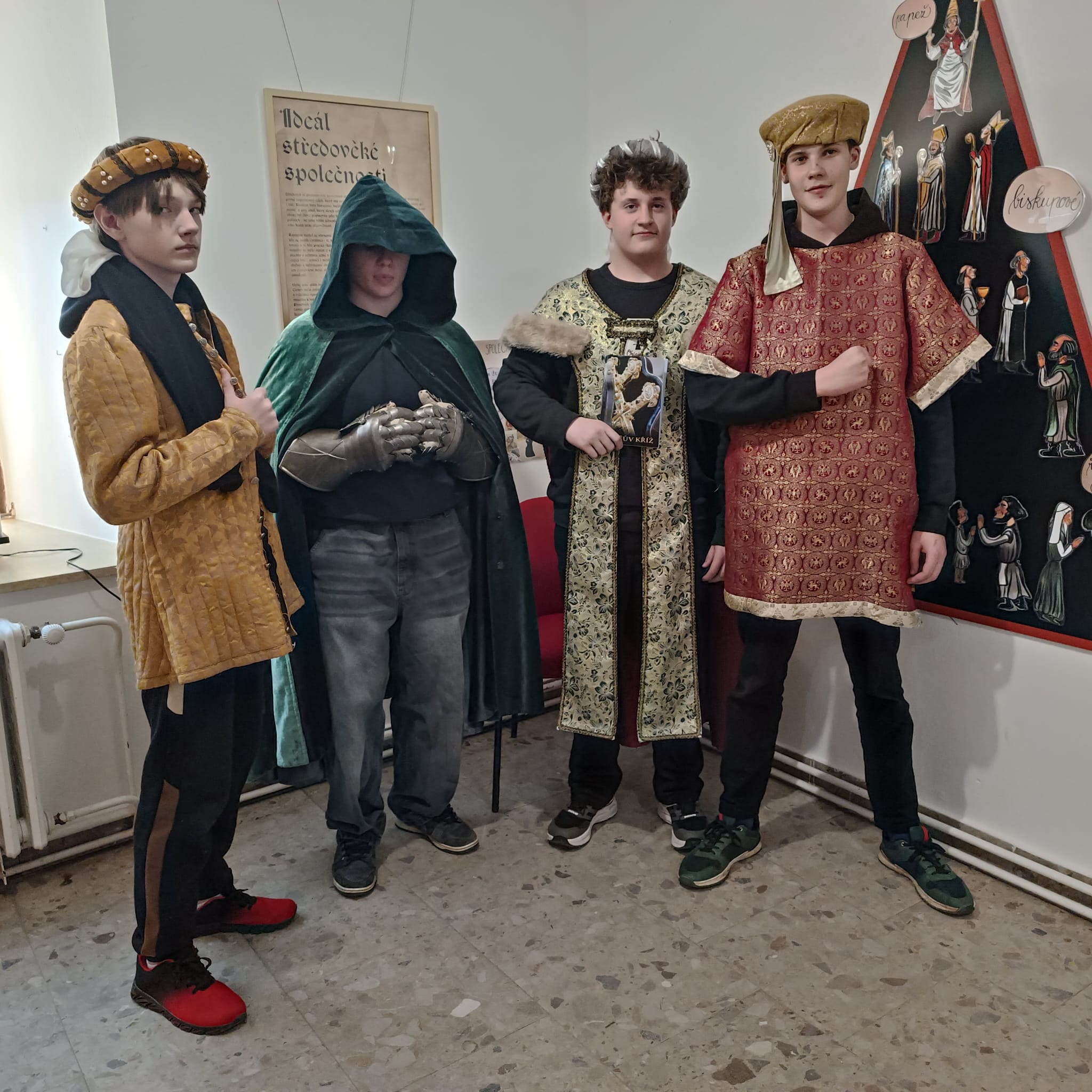 Zopakovali si základní fakta, prohlédli si výstavu dětských prací, vytvořili živý obraz v kostýmech, sestavili středověký jídelníček a nakonec si společně zahráli středověkou píseň.